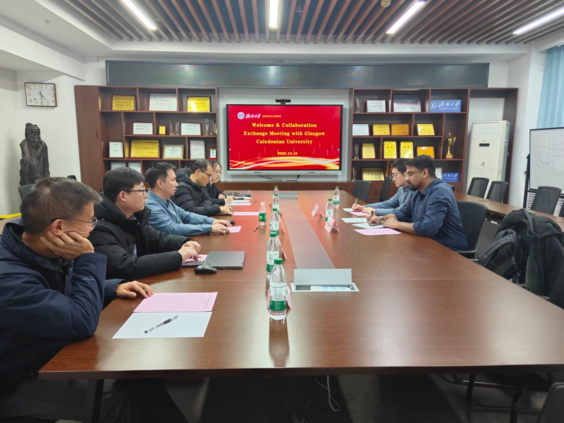 12月16日下午,pg娱乐电子游戏官网入口与英国格拉斯哥加利多尼亚大学科学与工程学院在12教704举行合作交流座谈会。英国格拉斯哥加利多尼亚大学科学与工程学院计算机科学系主任Anand Philip教授、Sha Liang博士,pg娱乐电子游戏官网入口院长王琳,副院长荆山、牛四杰和网络工程专业中外合作办学项目负责人吴鹏参加座谈,会议由学院学术副院长王晓芳主持。