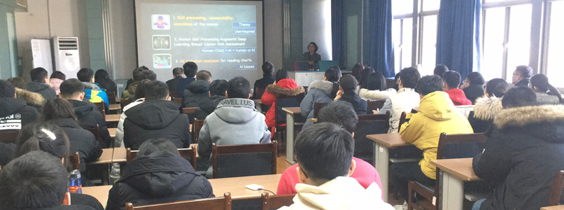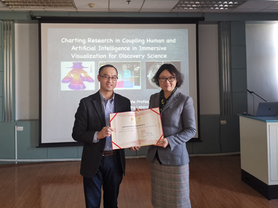 12月31日上午,陈博士与冯志全团队师生就研究中的具体问题进行了深入的交流,并提出了宝贵的意见和建议。下午,陈健博士在pg娱乐电子游戏官网入口作了题为“Charting Research in Coupling Human and Artificial Intelligence for Discovery Science”的学术报告。报告会由冯志全教授主持,陈贞翔院长、韩士元副院长、相关教师及学院100多位研究生到场聆听。报告会前,陈贞翔院长为陈健博士颁发了pg娱乐电子游戏官网入口客座教授聘任证书。报告中,陈博士介绍了其团队在可视化和人工智能领域取得的最新研究成果,其中包括基于视觉科学设计可视化方面、视觉可视化在实现人类智能和机器智能结合方面以及机器智能在读可视化图形时的行为和偏见等方面的最新发现。陈博士语言生动有趣,深入浅出、内容丰富,让广大师生收益匪浅。