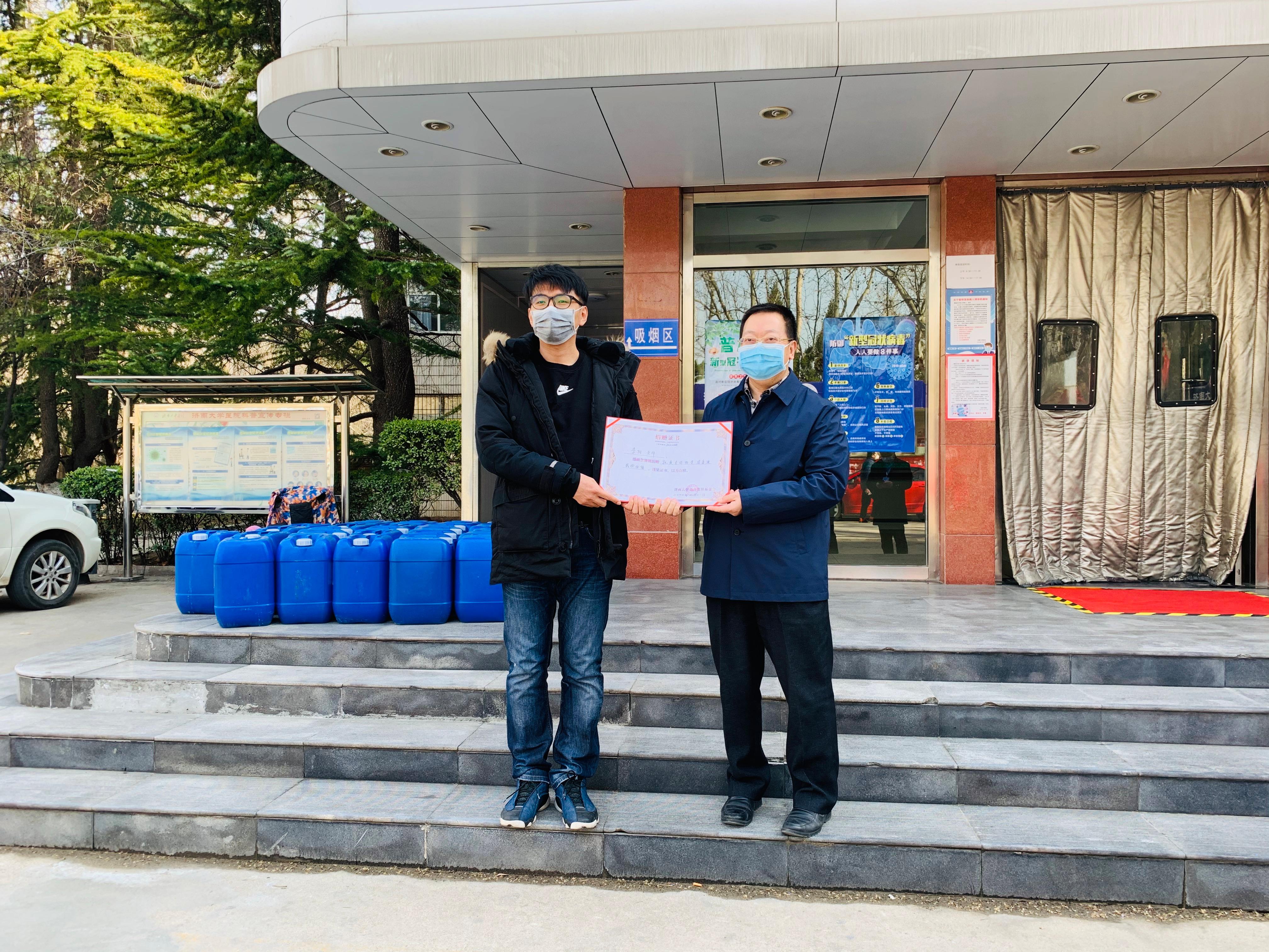 3月11日下午,pg娱乐电子游戏官网入口青年教师李阳向学校捐赠84消毒液25桶,用于支持学校疫情防控工作。pg娱乐电子游戏官网入口副校长刘宗明、合作发展处处长卢旺、合作发展处副处长李仲涛、校医院副院长景中军、pg娱乐电子游戏官网入口党委书记邱鲁军、院长陈贞翔以及相关部门负责同志出席捐赠仪式。