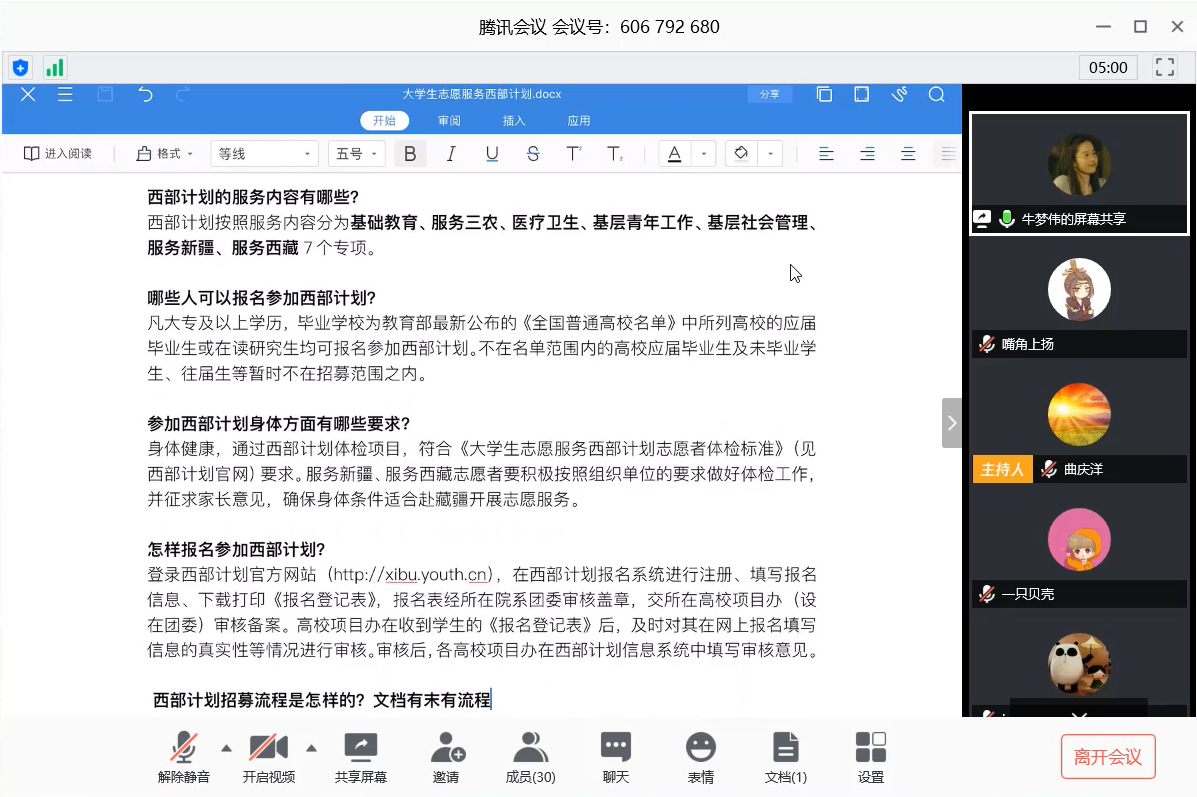 座谈会后,与会人员围绕报录比、薪资待遇、工作内容、服务周期等方面进行提问,古丽巴尔申·叶尔肯逐一进行详细解答。通过此次线上交流会,同学们对“大学生志愿服务西部计划”有了更加深入的了解,对“到西部去,到基层去,到祖国和人民最需要的地方去”有了更加深刻的理解和认识,也更加坚定了他们去西部的信念。