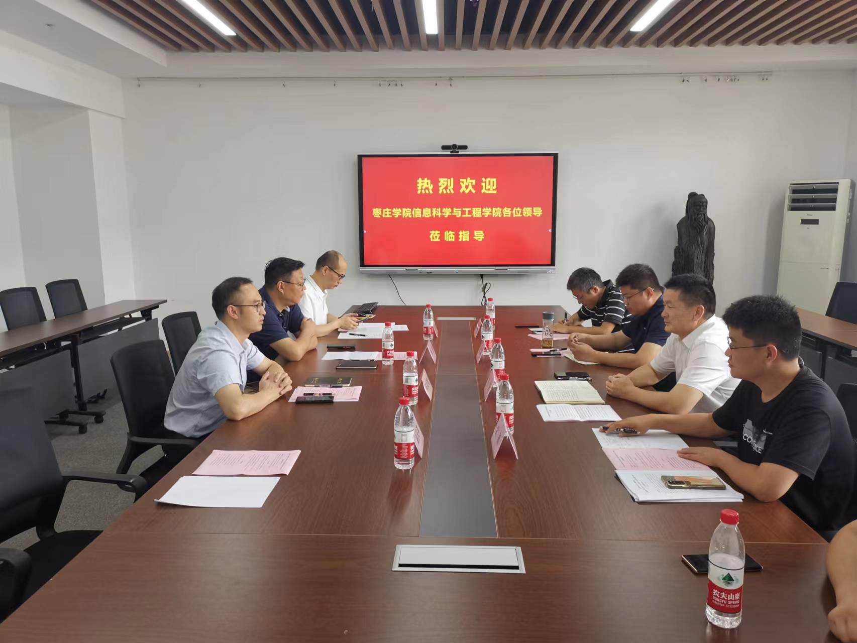 8月15日,枣庄学院pg娱乐电子游戏官网入口党总支书记姬广华、院长闫昕、副院长杨斌一行来pg娱乐电子游戏官网考察交流工作,学院党委书记李超、院长陈贞翔、副院长荆山,以及学院办公室相关人员共同参加座谈会。座谈会由学院党委书记李超主持。