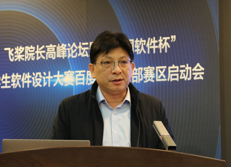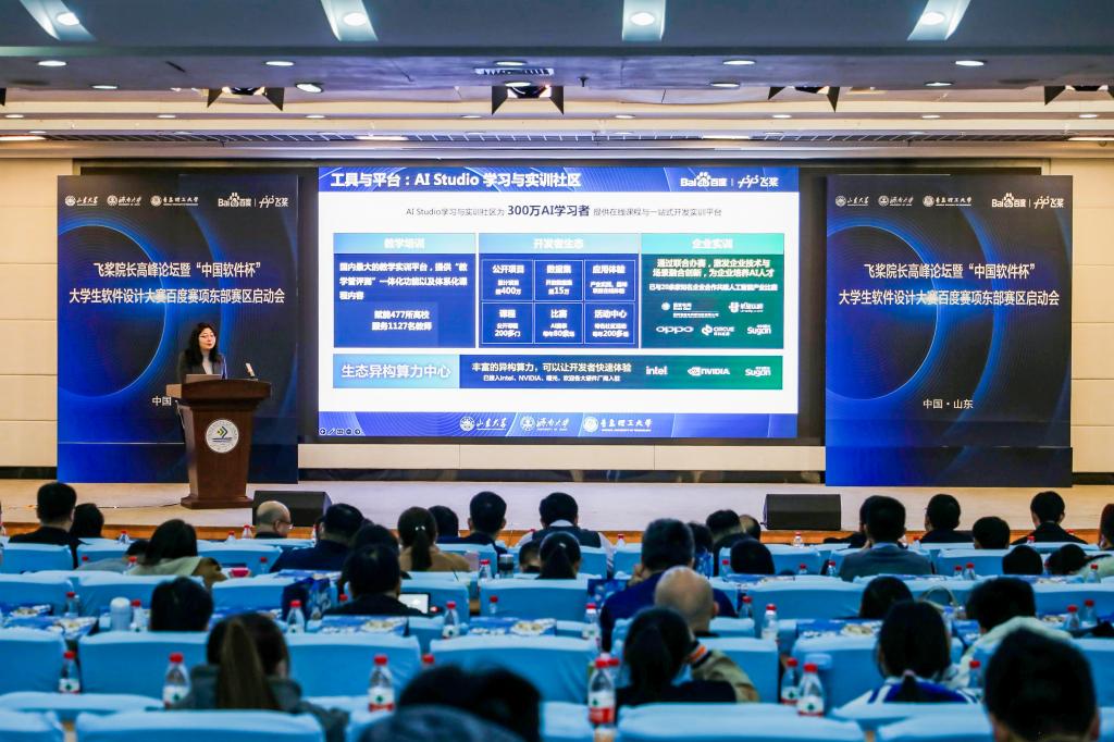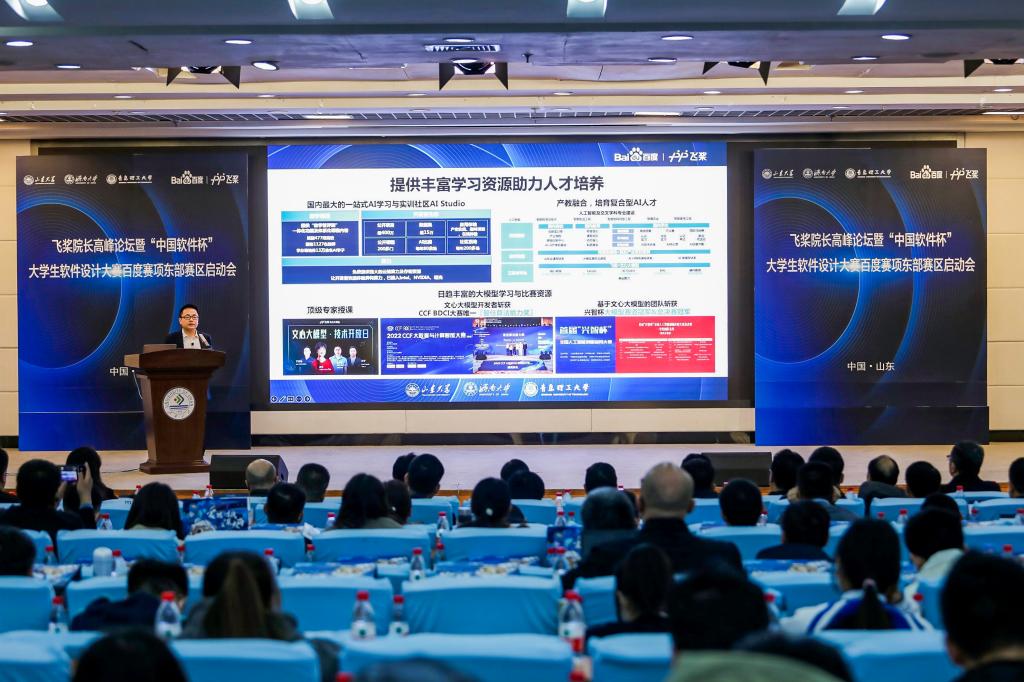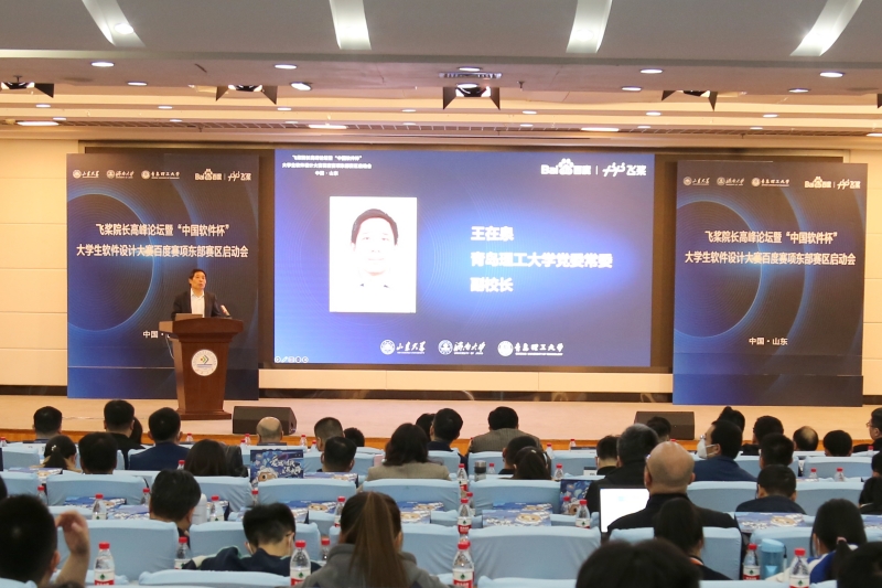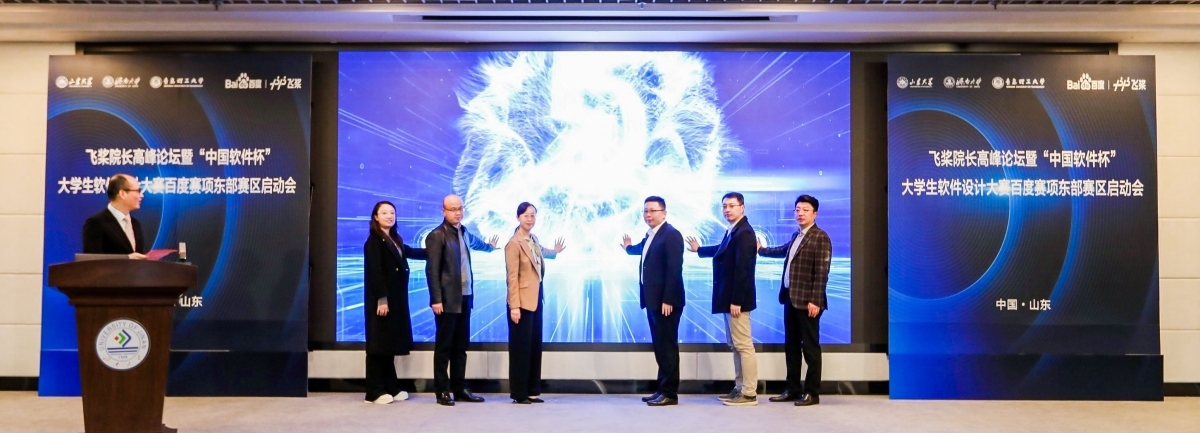 在与会各方的共同见证下,济南市市中区副区长张源、山东大学团委书记姜炳刚、青岛理工大学信息与控制工程学院院长田艳兵、pg娱乐电子游戏官网入口团委副书记纪祥、百度AI技术生态总监周奇、“中国软件杯”大学生软件设计大赛副秘书长卢秀娜共同启动“中国软件杯”大学生软件设计大赛百度赛项东部赛区赛事。