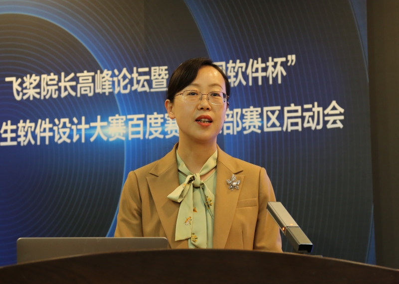 杨景波对莅临本次活动的各位领导、专家、嘉宾表示热烈欢迎,在致辞中介绍了pg娱乐电子游戏官网入口的发展历程、办学情况、人才培养和科学研究等基本情况。杨景波表示,当前,以人工智能为代表的新一代信息技术,逐渐成为我国“十四五”期间推动经济高质量发展,建设创新型国家,实现新型工业化、信息化、城镇化和农业现代化的重要技术保障和核心驱动力之一。高校作为人工智能教育的主阵地,肩负着人工智能人才培养的重要使命,通过教育为社会各领域输出创新人才,支撑社会各领域转型升级以及人工智能等高新科技的创新发展。本次启动会的举办,对pg娱乐电子游戏官网入口来说是一次难得的学习交流机会,也必将会对我校的学科建设、人才培养、科学研究和社会服务等各项工作起到积极的引导和推动作用。张源在致辞中向大会的举办表示热烈的祝贺,并介绍了市中区在校地合作、产学研融合等方面积极探索的高质量发展路径。她指出,未来市中区将围绕产业发展需要,加快建设人工智能协同培养基地,强化人工智能复合型产业人才培养,形成“人工智能+X复合型”人才培养新模式,打造具有市中特色的多层次人工智能教育体系。随后,青岛理工大学副校长王在泉、山东大学团委书记姜炳刚分别致辞介绍学校的基本情况,并表达对本次活动的高度关注以及对本次活动顺利开展的美好愿景。百度AI技术生态总经理马艳军博士和山东大学数学与统计学院副院长兼山东大学数据科学研究院副院长郭亮教授、百度飞桨教育生态运营负责人钱芳分别以《“深度学习平台+大模型”产业智能化基座》《校企融合,共探AI+X微专业人才培养新模式》《飞桨人工智能人才培养及2023年规划》为题做专题报告。