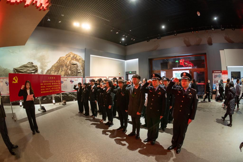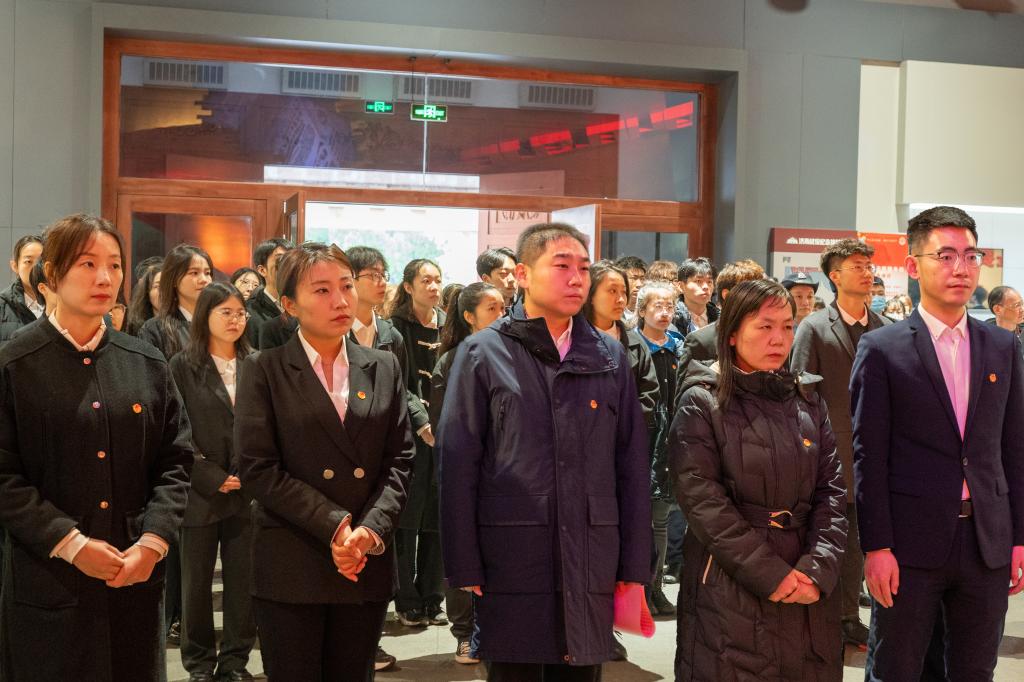 在济南战役纪念馆,全体成员聆听了《关于清明节纪念缅怀英雄烈士的倡议》,倡议号召广大青年到烈士陵园献一束花、敬一个礼,瞻仰英雄,缅怀烈士,告慰先烈英灵。随后,面向团旗,在场团员青年共同重温入团誓词,牢记革命先烈遗志,坚定不移听党话跟党走,立志做有理想、敢担当、能吃苦、肯奋斗的新时代好青年。