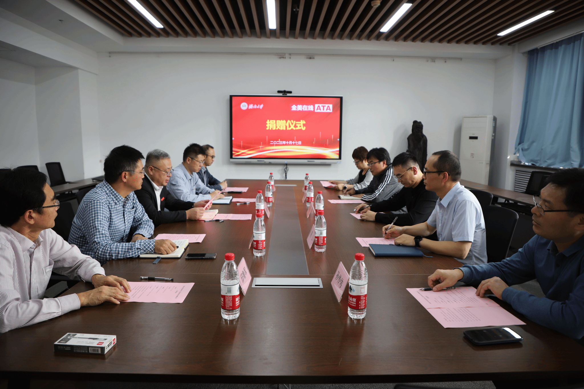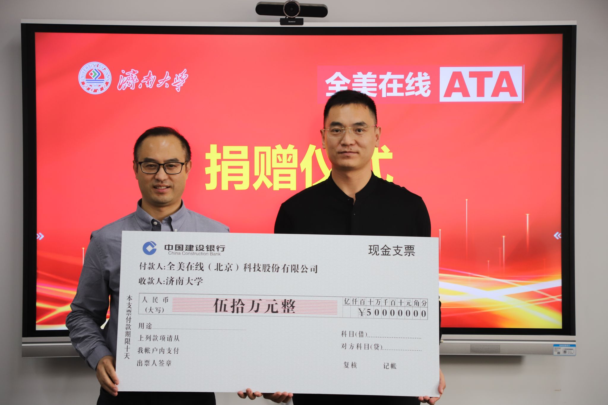 全美在线(北京)科技股份有限公司成立于2006年,公司围绕“一核两翼”的战略布局,专注于考试测评的核心业务,不断向人才能力提升和招聘求职延展,为考试主办方、考生提供考试测评技术和运营服务。在pg娱乐电子游戏官网入口庆祝办学75周年之际,公司向学校捐赠50万元,专款用于第12号教学楼8层环境改造,将为师生教学、科研等提供更加良好的条件保障。