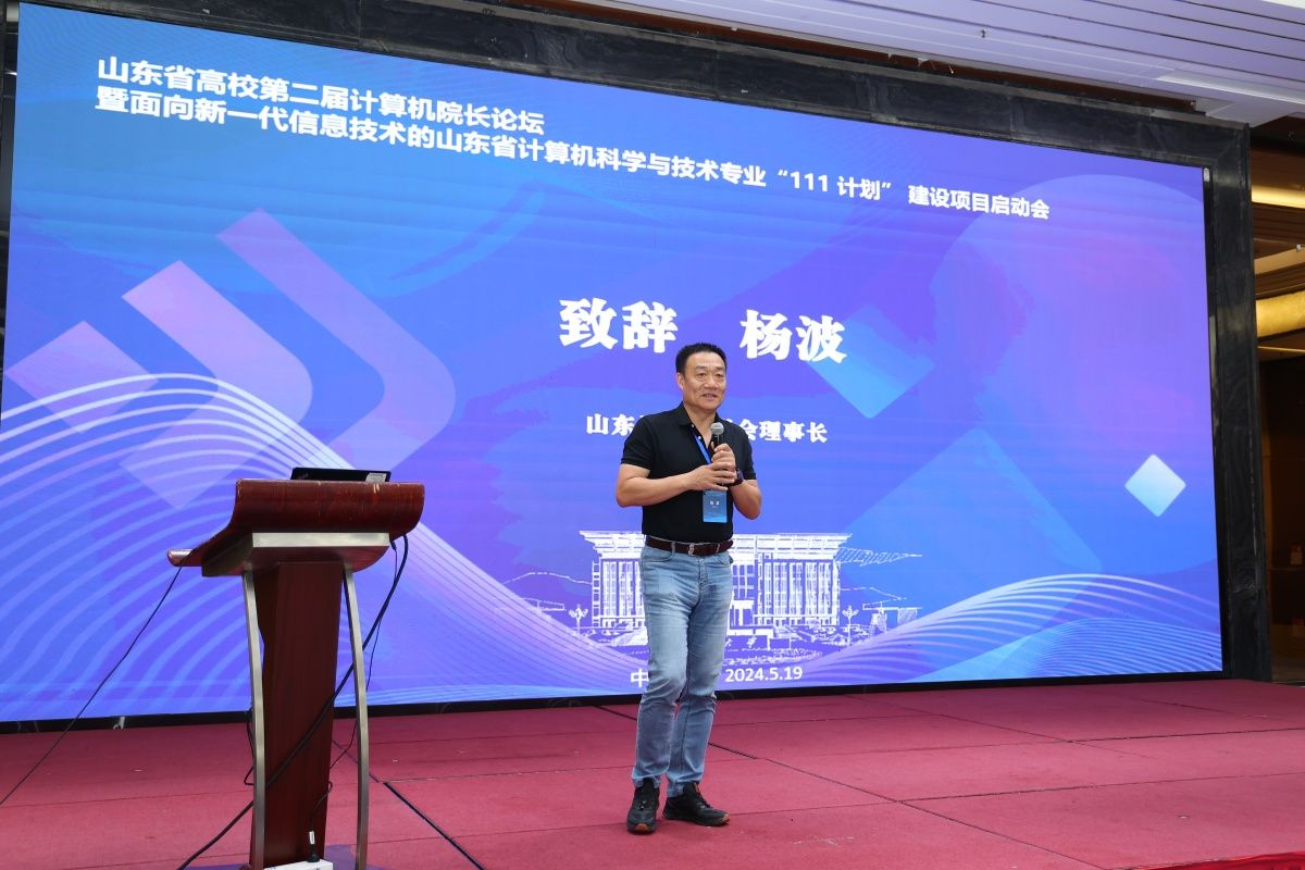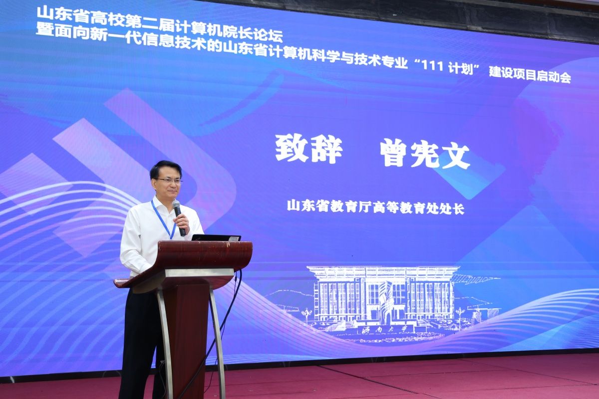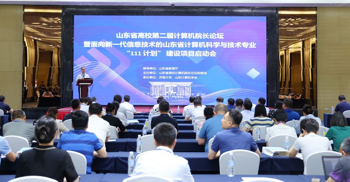 5月19日,由山东省教育厅指导,山东省高校计算机院长论坛组委会主办,pg娱乐电子游戏官网入口和山东计算机学会承办的山东省高校第二届计算机院长论坛暨面向新一代信息技术的山东省计算机科学与技术专业“111计划”建设项目启动会在山东济南召开。会议主题是“数字时代计算机科学与技术专业人才培养及核心课程建设”。山东省教育厅高等教育处处长曾宪文,pg娱乐电子游戏官网入口副校长王霞,山东计算机学会理事长杨波,济南计算机学会理事长董吉文,项目牵头单位负责人、山东大学计算机科学与技术学院院长成秀珍,以及来自省内近40所本科高校、11家企业代表出席活动。北京大学计算机学院院长胡振江、西安交通大学计算机科学与技术学院院长张兴军、吉林大学胡亮教授作大会特邀报告,山东大学彭朝晖教授及企业代表作专题报告。大会开幕式由pg娱乐电子游戏官网入口教务处处长、pg娱乐电子游戏官网入口院长陈贞翔主持。