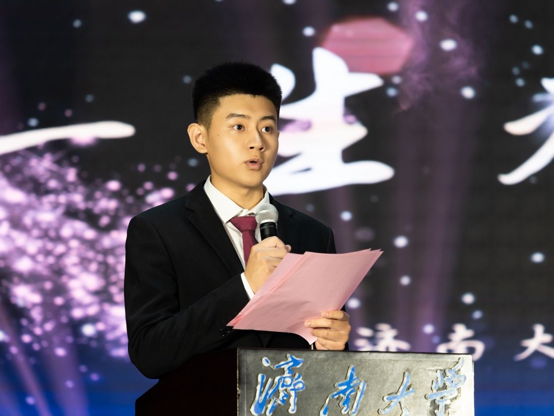 2020级本科毕业生刘泽宇代表所有毕业生发言,他向辛勤耕耘、无私奉献的老师们表达了衷心的感谢和崇高的敬意,号召全体毕业生在未来的职业生涯中努力做到学而知、学而信、学而行,牢记师生教诲,拼搏出属于自己的精彩人生!