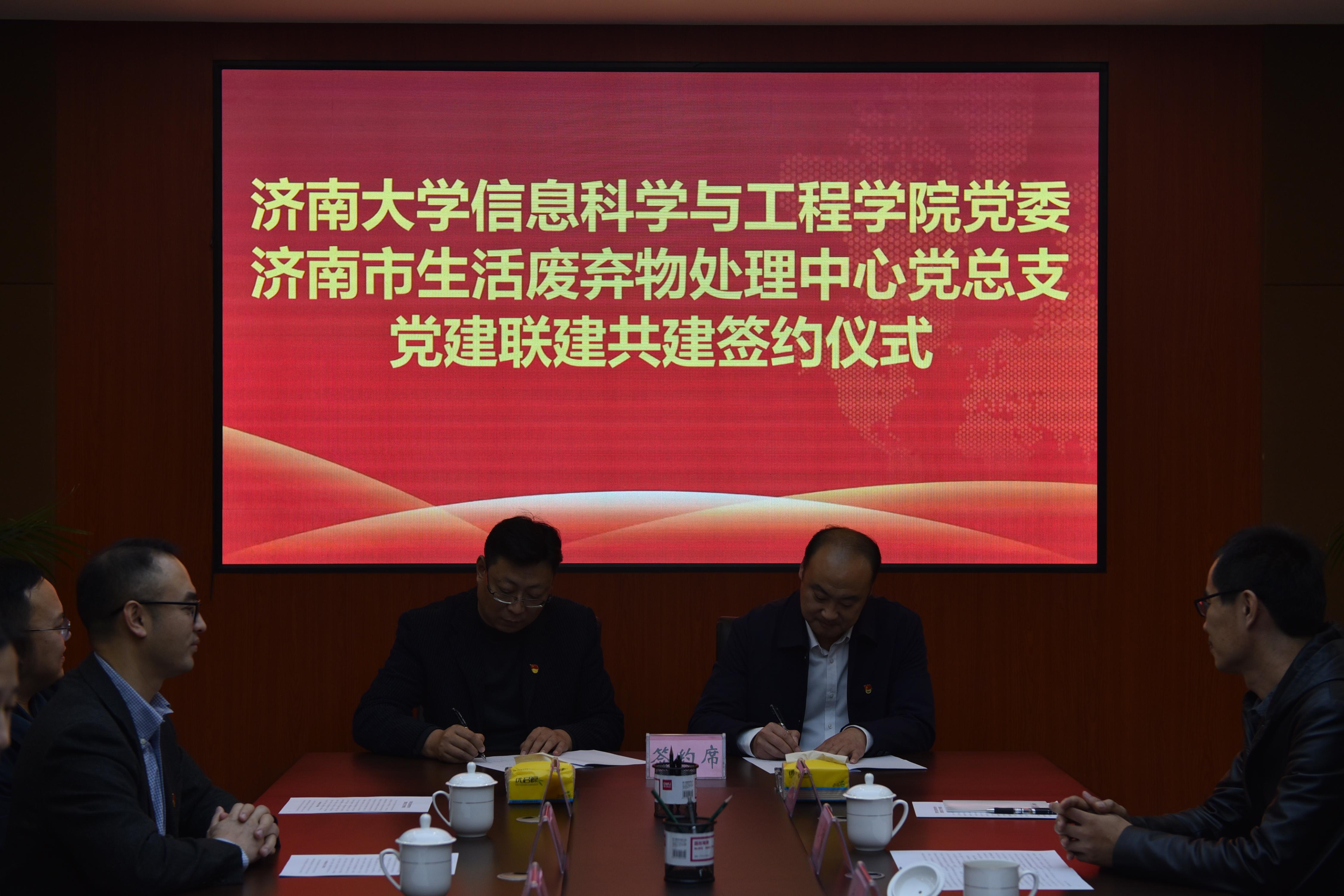 签约仪式上,济南市生活废弃物处理中心党总支书记、主任宫本水,pg娱乐电子游戏官网入口党委书记李超、院长陈贞翔分别介绍双方党建与业务工作情况;宫本水书记与李超书记共同签署了《党建共建联建协议》,边书君副主任、陈贞翔院长共同为“党建联建共建基地”揭牌;双方围绕党建共建协议的目标、内容及举措方面进行了研究商讨,并一致表示要开展多领域、多角度的交流合作,共同推动党建与业务有机结合、协调发展。