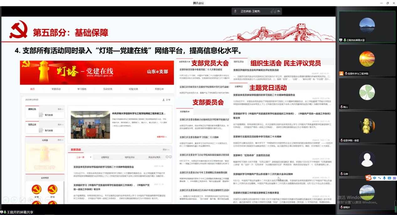为深入学习贯彻习近平新时代中国特色社会主义思想、党的二十大精神和学校第四次党代会精神,进一步压实党支部书记履行全面从严治党责任,推动全面从严治党向基层延伸,切实提升党支部工作科学化水平,12月13日,pg娱乐电子游戏官网入口2022年度党支部书记履行全面从严治党责任和抓基层党建述职评议考核会以线上形式召开,学院党委委员、组织员、党支部书记、师生党员代表参加会议。会议由学院党委书记李超主持。