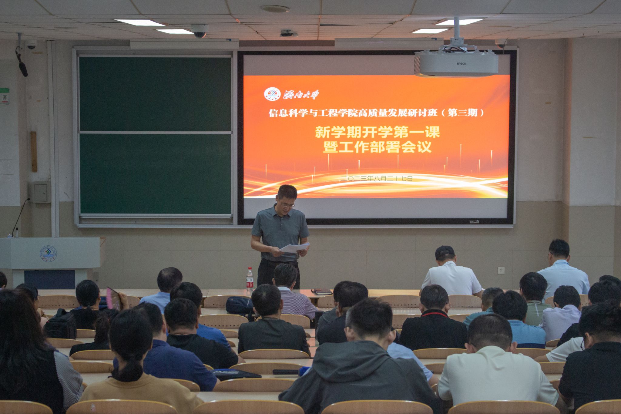 为全面贯彻落实立德树人根本任务,进一步凝聚共识、谋划新局,为新学期工作蓄势赋能,8月27日下午,pg娱乐电子游戏官网入口在11教5101召开新学期开学第一课暨新学期工作部署会。学院党政领导班子成员、全体教职员工参加会议,会议由学院党委书记夏卫东主持。
