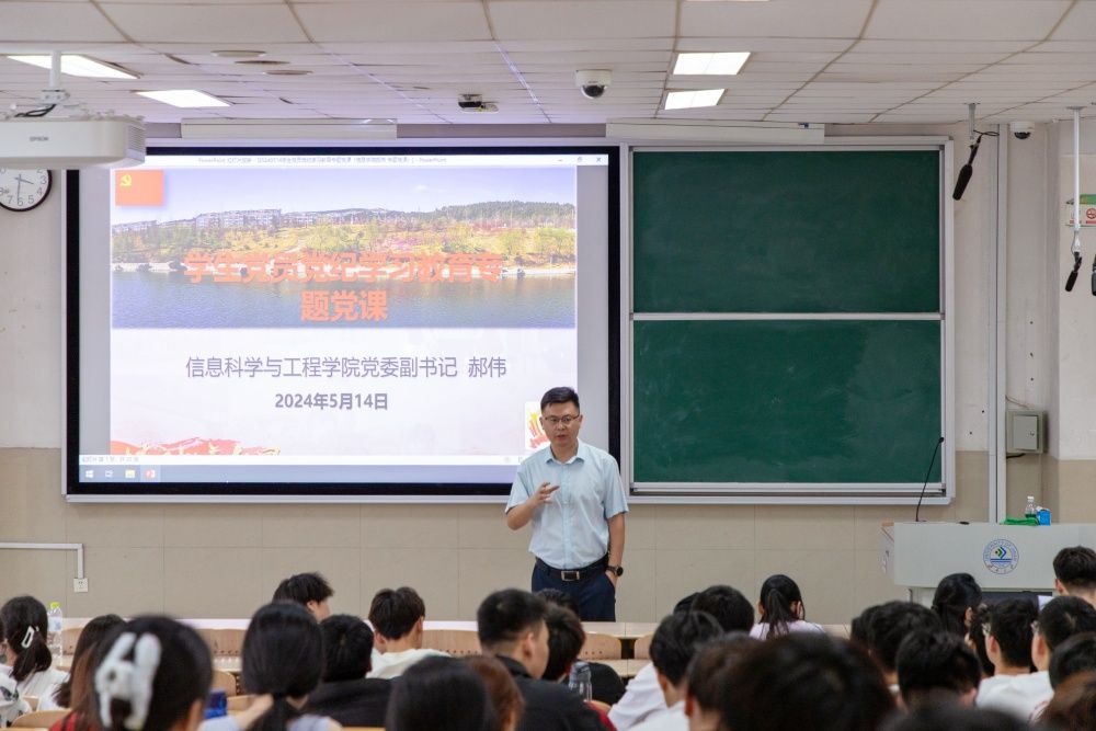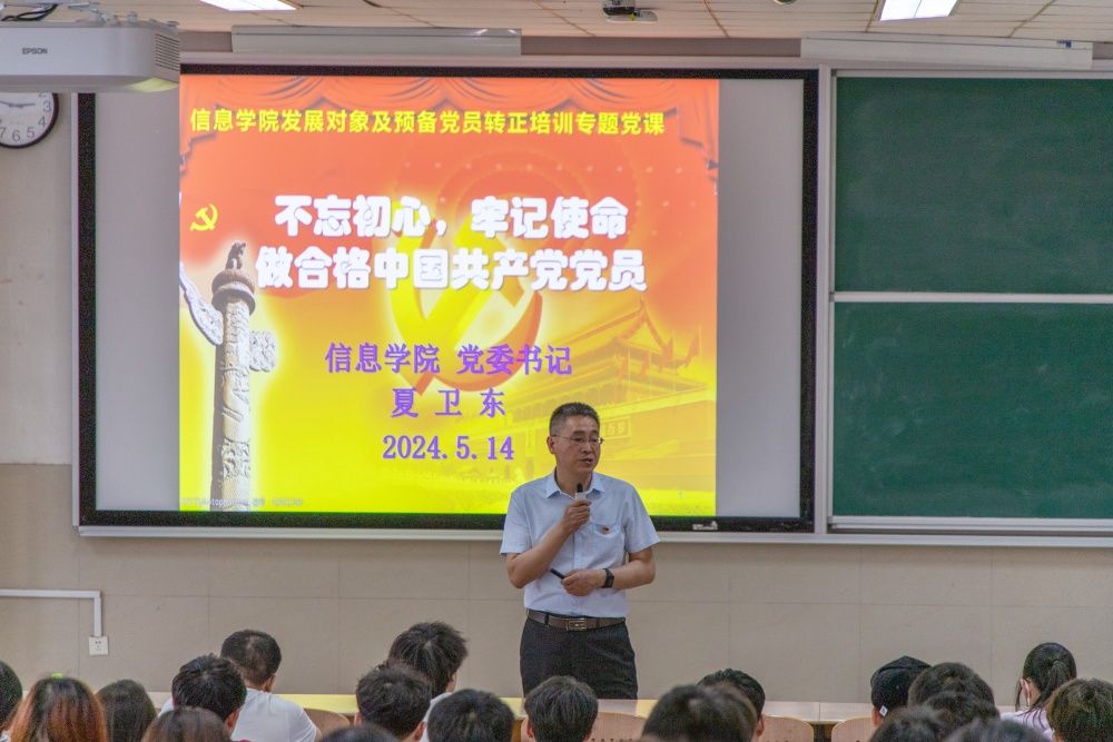 为做好学生党员的教育、管理和培养工作,推进党纪学习教育走深走实,进一步坚定党组织发展对象和预备党员的理想信念,提高党性修养,强化使命担当,增强纪律和规矩意识,5月14日,pg娱乐电子游戏官网入口开展本学期党组织发展对象和预备党员转正培训专题党课。学院党委书记夏卫东、党委副书记郝伟分专题为大家讲授党课,本学期党组织发展对象和即将转正的预备党员近200人参加了培训。
