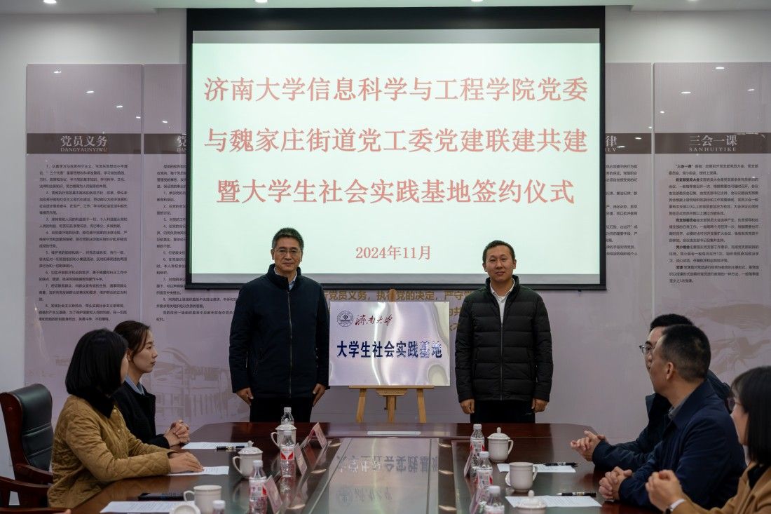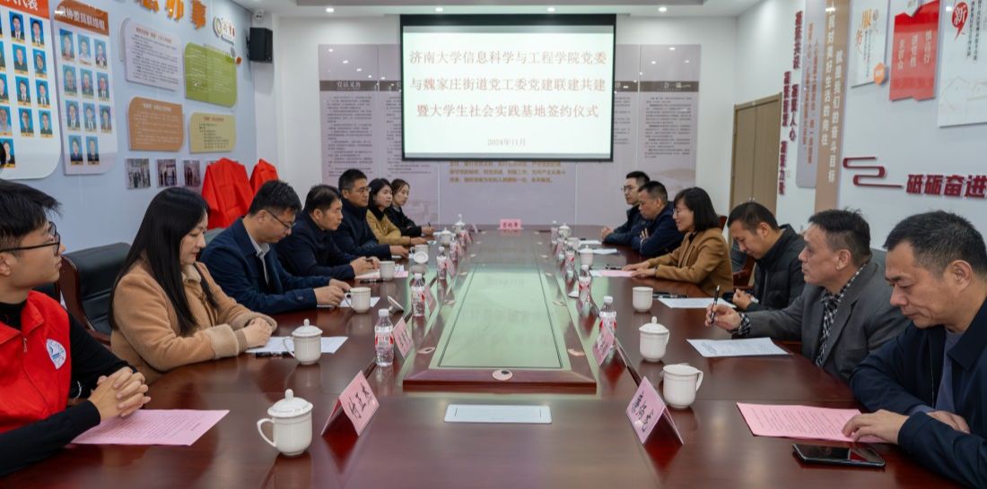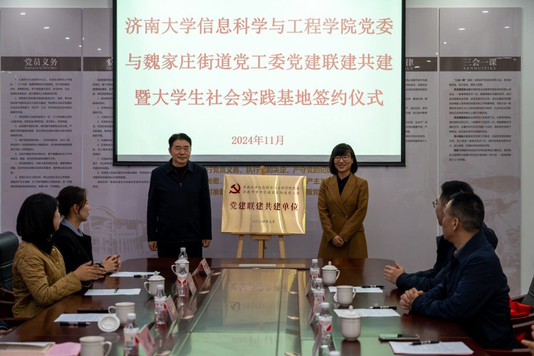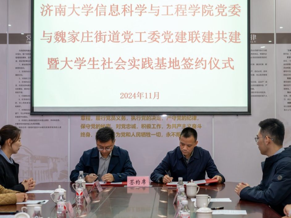 为进一步发挥党建引领作用,加强社区与学校融合共建、优势互补,以党建带团建,深化“百万大学生进社区”社会实践工作,推动基层治理与高校育人“双向奔赴”,11月26日上午,pg娱乐电子游戏官网入口与济南市市中区魏家庄街道党建联建共建暨大学生社会实践基地签约挂牌仪式在魏家庄街道同生里社区举行,pg娱乐电子游戏官网入口党委常委、纪委书记、省监委驻pg娱乐电子游戏官网入口监察专员续铁,pg娱乐电子游戏官网入口党委书记夏卫东,党委副书记、副院长郝伟,共青团济南市市中区委书记党淼,济南市市中区魏家庄街道党工委书记徐昕,党工委副书记、政协联络室主任夏定军,同生里社区党委书记廉炳龙,pg娱乐电子游戏官网入口团委、pg娱乐电子游戏官网入口相关负责人、魏家庄街道相关负责人以及学生志愿者代表参加仪式。