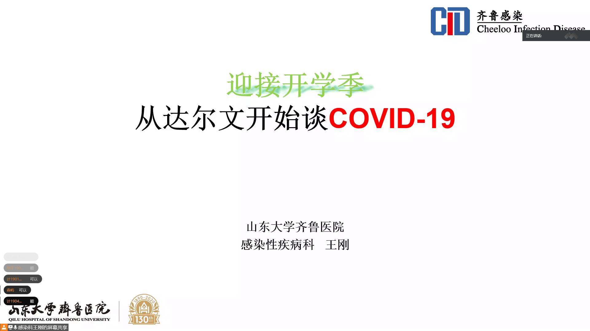为进一步加强学生对新冠肺炎疫情的认识,做好科学防护,有效切断病毒传播途径,切实保障学院学生身体健康,8月13日晚,pg娱乐电子游戏官网入口邀请山东大学齐鲁医院感染科主任医师王刚通过腾讯会议为学院学生开展新型冠状病毒肺炎疫情防控知识讲座。