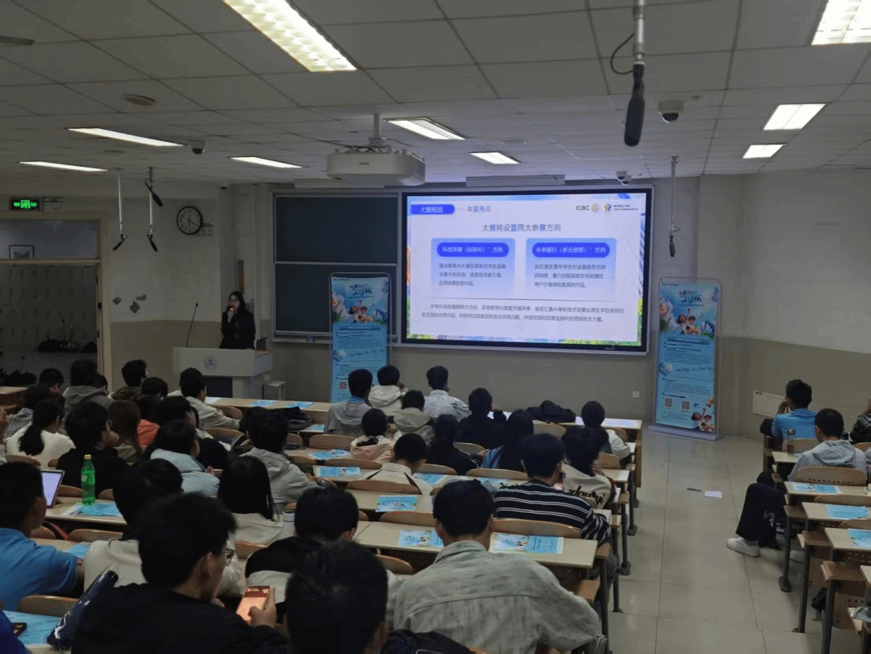 讲座中,工行专家围绕大赛“金融科技赋能未来”的主题展开深度解析,系统介绍了赛事聚焦的智慧金融、区块链应用、数字人民币创新等前沿赛道,结合工行实际业务场景阐释了人工智能在风险控制、客户服务优化等领域的落地案例。专家强调,大赛不仅考察技术实现能力,更关注方案的社会价值与商业化可行性,工行为优秀作品提供开发资源支持、行业导师指导及成果转化通道,助力学生团队实现从创意到落地的跨越。往届获奖团队代表则从学生视角分享备赛历程,详细讲解如何将信息学院的技术优势(如数据分析、算法开发)与金融业务需求结合,并建议从社会痛点切入选题,例如设计普惠金融解决方案或跨境支付优化模型。