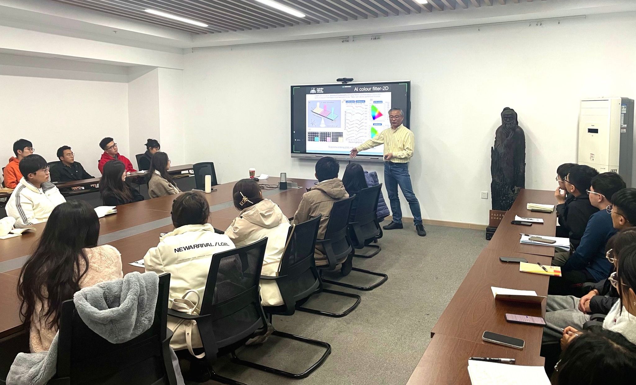 11月9日,应pg娱乐电子游戏官网入口和山东省网络环境智能计算技术重点实验室邀请,澳大利亚国立大学物理系Duk-Yong Choi(崔德镕)教授来我校作了题为“Materials and nanofabrication of optical metasurfaces”的学术报告。报告会由信息学院集成电路系高嵩教授和岳文静副教授联合主持,学院相关专业老师、研究生、本科生参加了报告会。