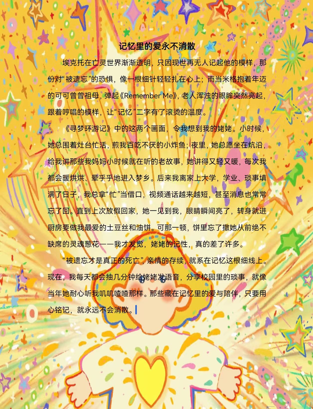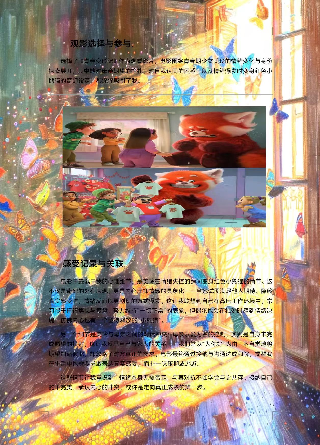 活动里,三部治愈系电影化作通往内心的密钥:《寻梦环游记》的亲情羁绊唤醒心底的柔软,《小王子》的诗意哲思照见自我的模样,《青春变形记》的情绪涌动叩响共鸣的心弦。同学们自主选片观影,于光影流转间捕捉“戳中自己的心理细节”,将影片中的情绪议题与自身生活相融,落笔写下真实感悟。大家围绕电影中的心理话题畅所欲言,从《青春变形记》里的情绪失控聊到学业压力下的自我调节,从《小王子》的成长困惑谈到对生活的重新认知,一字一句皆是真情流露,一来一往间织就温暖的心理联结。