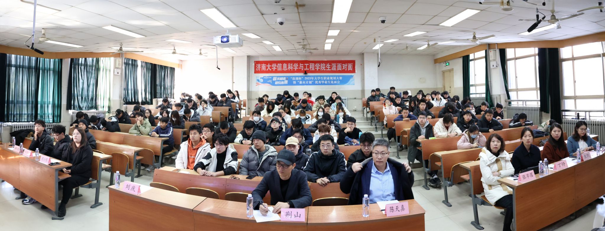 为贯彻落实党中央、国务院关于高校毕业生就业工作的决策部署,落实《国务院关于印发“十四五”就业促进规划的通知》精神,加强高校生涯教育和就业指导,搭建在校学生与优秀毕业生的沟通交流平台,进一步增强学生对就业流程的理解,以科学的方法规划个人职业生涯,11月25日上午,pg娱乐电子游戏官网入口在11教1101举办了“生涯面对面”优秀毕业生见面会暨“浪潮杯”2023年大学生职业规划大赛启动仪式,pg娱乐电子游戏官网入口副院长荆山、浪潮优派副总经理陈天真出席活动。学院辅导员、班主任代表及浪潮校企合作专业近200名学子参加活动。